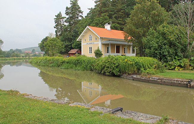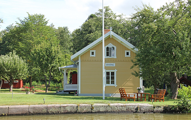 Längs kanalen finns ett stort antal vackra kanalstugor (slussvaktarbostäder) som är väl bevarade.