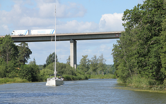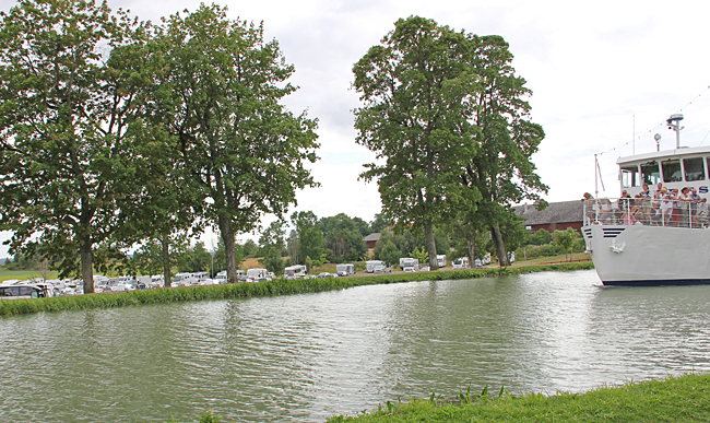 Många lediga platser på Norsholms ställplats denna dag, bara två husbilar. Nu var vi på väg ut på tredje kanalsträckan som mäter 14 km tur och retur.