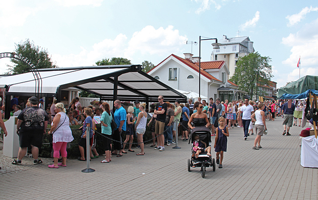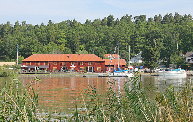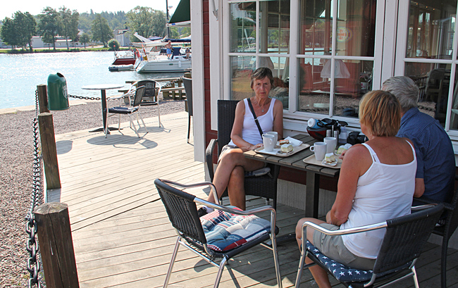 Det smakade gott med en glass i värmen, sittande under ett parasoll på hamnmagasinets veranda.