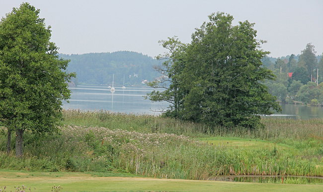 Precis där kanalen möter sjön Asplången ligger Söderköpings golfklubb och där passar det ju bra med lite förmiddagsfika. Efter en stunds vila börjar det regna och vi skyndar den dryga milen tillbaka till Söderköping. Totalt 22 km på cykel denna etapp. Eftermiddagen tar vi det lugnt och umgås i husbilarna. Senare fick tjejerna smaka den efterlängtade glassen på Smultronstället, eftersom kön helt plötsligt var väldigt kort. Pojkarna fick varsin öl.