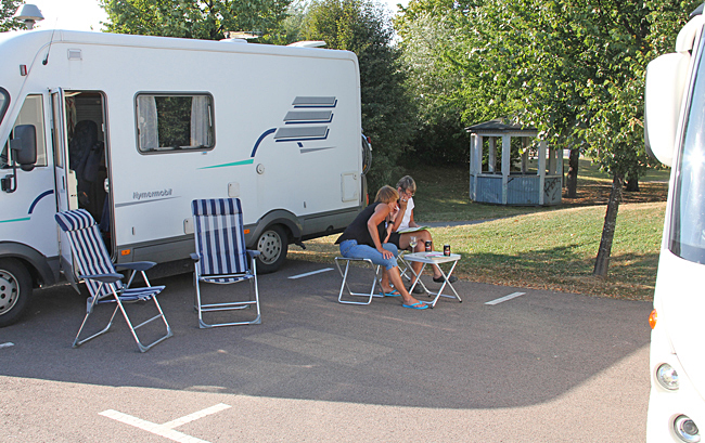 Vi startade med att träffa vännerna Ingegärd och Jan på den provisoriska ställplatsen vid skolan i Söderköping (öppen ca 15/6-15/8) där vi parkerat många gånger tidigare. Den stora fördelen här är att den har ett centralt läge bara ett stenkast från kanalen. Den enda servicen som finns är vatten och soptunna. Tömning kan ske på den närbelägna Korskullens camping som också inkasserar avgiften varje kväll. Ett annat alternativ är Ställplats Skeppsdockans Camping.