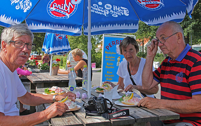 Den här gången vart det Räkmacka från fiskaffären i Sjötorp. Många gånger har vi stått på Ställplatsen i Lyrestad och cyklat hit för att köpa Rökt Vänersik och romsås.