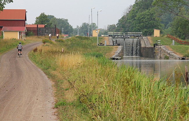 Det är en skön känsla att i sakta mak trampa längs Göta kanal en varm sommardag. Många möten med andra cyklande turister och båtarna på kanalen som glider fram i det svenska sommarlandskapet.